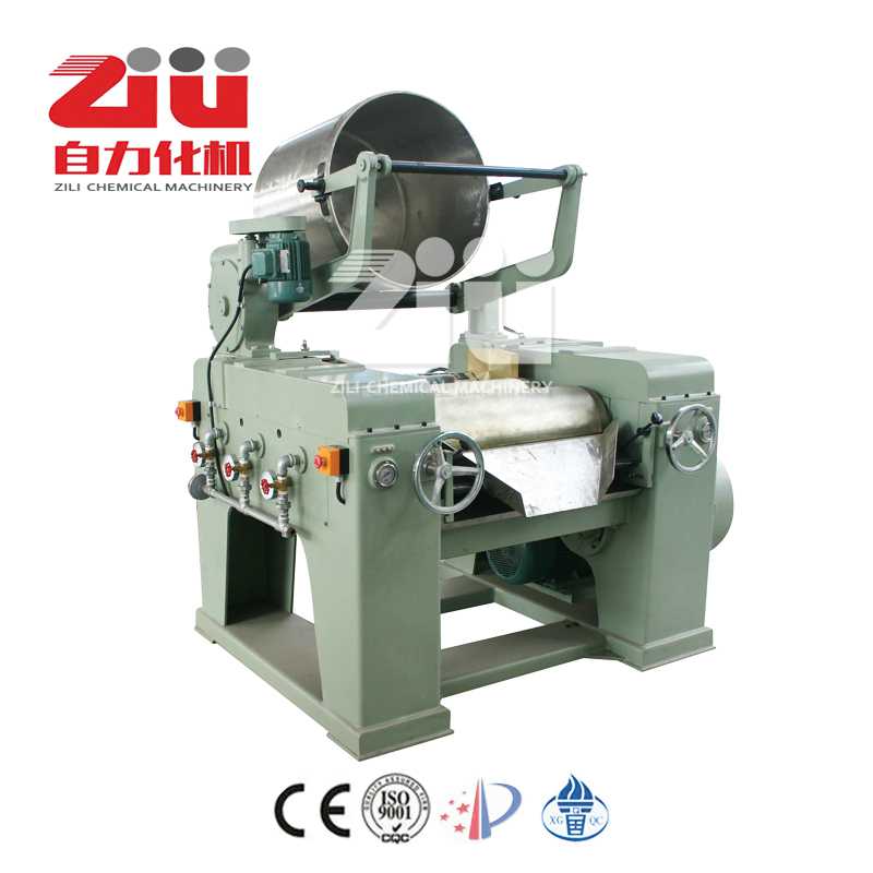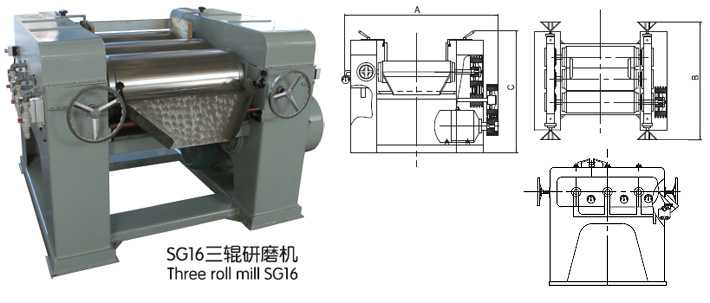 三辊研磨机主要用于各种油漆、油墨、颜料、塑料等浆料。特别适用于研磨分散粘度高而粒度要求细的产品。通过水平的三根特制合金辊筒的表面相互挤压及不同速度的摩擦而达到研磨效果。SG改进型机的传动采用国外最新成果链轮传动,齿轮都浸入润滑油中,最大限度的延长了机器的使用寿命,并且降低了噪音和能耗,密封部件均为进口;原三辊研磨机顶调辊结构现改为齿轮调辊,更平稳轻便,工作持久稳定。进出水口都可定制温度显示,保证所做产品不受温度变化而影响产品质量,并且可根据客户要求加装冷却水回收节能装置,手轮压力显示装置或者辊筒加热装置;出料斗采用不锈钢,外观采用耐溶剂油漆,使机器光泽不受外蚀溶剂的影响而变化。